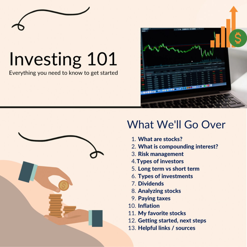 - WHAT: I will personally teach you all you need to know about investing. I will explain in full detail about dividends, taxes, risk management and some of my favorite picks that have earned me thousands of dollars. You will walk away understanding how it ALL works
